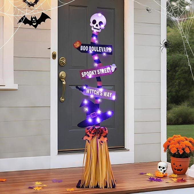 9. Halloween Decorations with Broomstick Door Decor