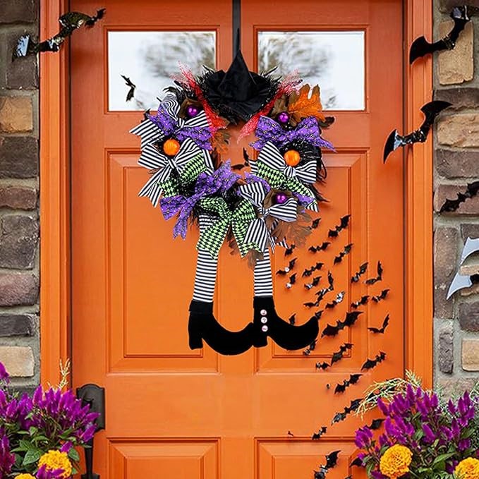 11. Halloween Door Decoration with Witch Wreath