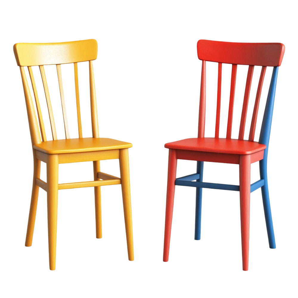 You can revive your old chairs that look faded or dull by trying two-tone painting. Use a bold colour for the frame and a neutral shade for the seat, or opt for bold contrast, red and yellow, black and pink, green and mustard. Two-tone painting gives your chair an artistic and modern flair in no time.