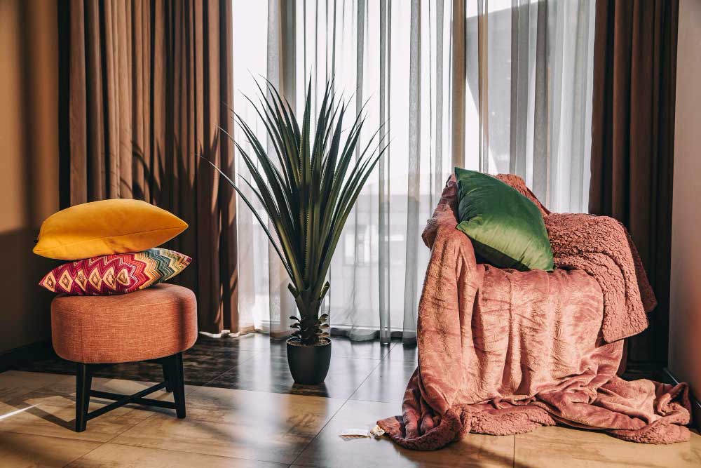 - Layering fabrics such as rugs, throws, cushions, and heavier curtains instantly improves softness, insulation, and visual depth in the space.