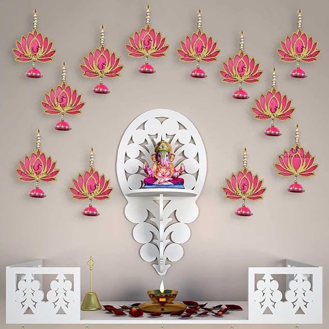 The most difficult part of decorating the puja room is the backdrop, or background. While many settle for fabric backdrops, there are many who dislike the same. If you want to try out something new for the background, pick some lotus latkans for your puja room. It is a fuss-free décor that can sort your décor dilemma instantly. These latkans are quite versatile in their use; hence, you can place them in any spot of your choice.