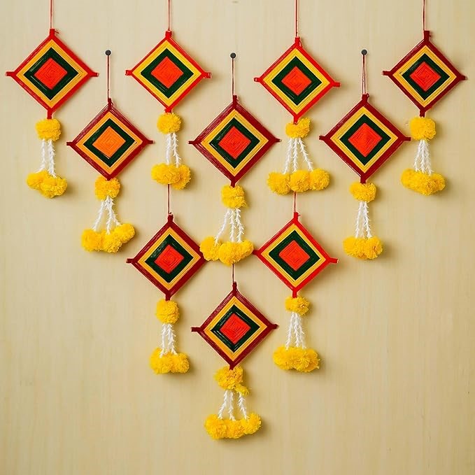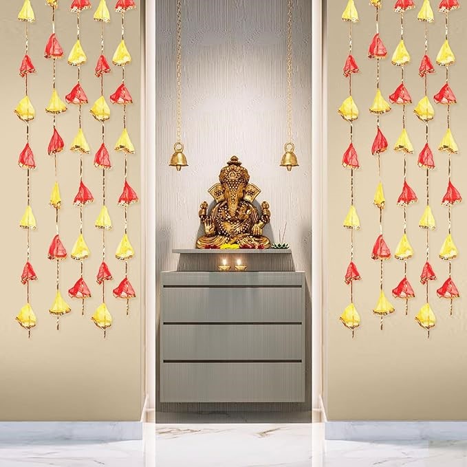 Door hangings or wall hangings for Diwali decor make an interesting focal point for your home entrances, puja room décor, living room, or bedroom. It looks elegant and attractive when hung on the entryways.