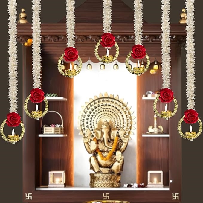 These hanging tea light holders are a much-needed change from the routine tea light holders. You can use them in any corner of the house, but they will look elegant in your puja room specifically.