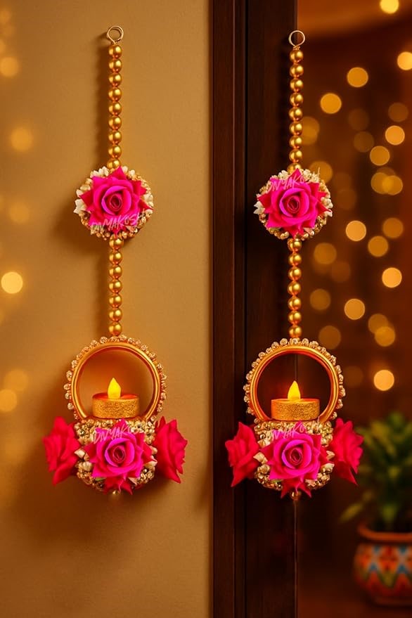 Flower and diya toran are one of the best Diwali home decoration ideas for achieving a welcoming entrance. These come as a surprise because they are quite different from the traditional torans. You can pick just two pieces of these danglers and hang them at the two top corners of your main door to jazz up this Diwali.