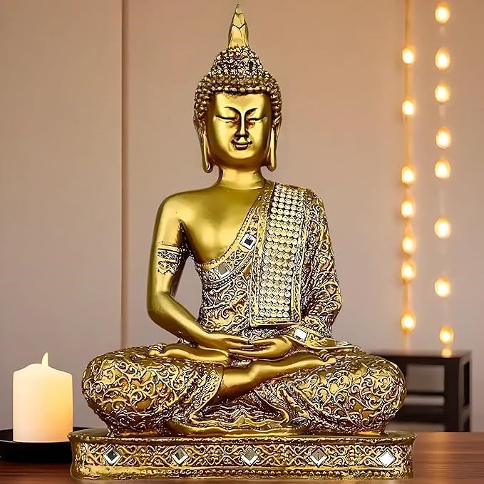 Add crystal diyas, hanging glass Urlis, lotus-themed latkans, and a mandala backdrop. Use subtle warm lighting to make your puja room the highlight of your home décor this Diwali.