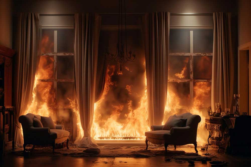 Lightweight fabrics catch fire easily and help flames travel upwards. This makes curtains particularly dangerous, as they can spread fire from a small heat source to the ceiling in seconds.