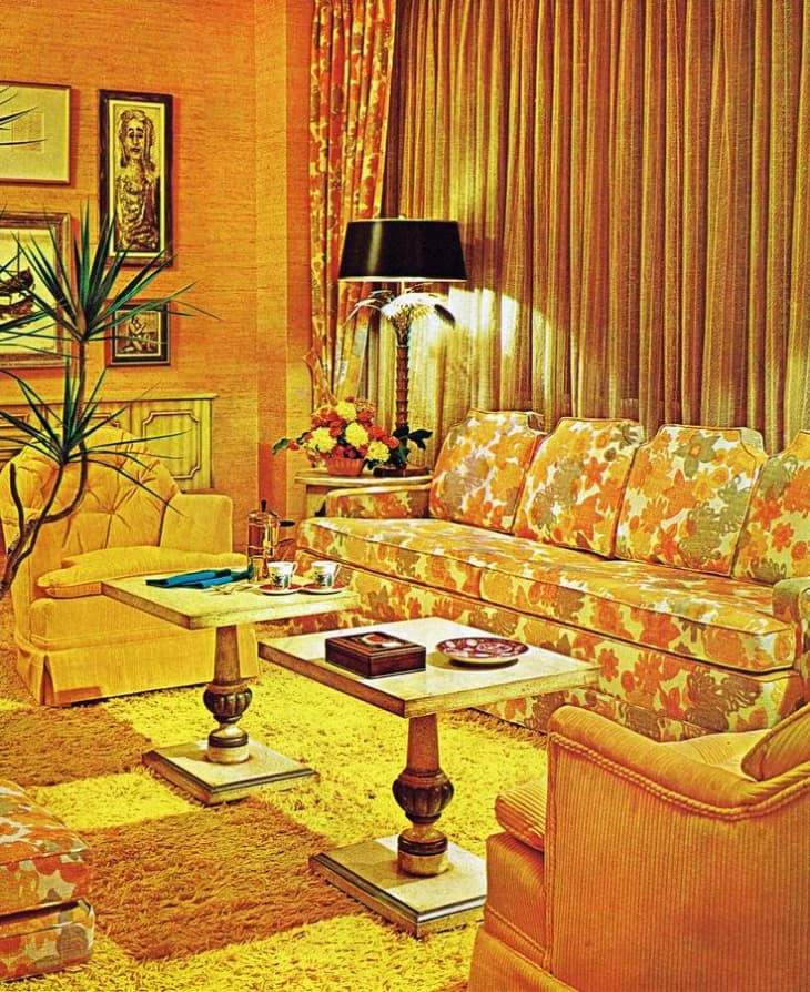As the 1970s approached, there was a little transformation in the trends, with groovy designs topping the interior styles. Bold and big flowers in warm hues like green, orange, and mustard adorned the interiors with their Pop Art influence.