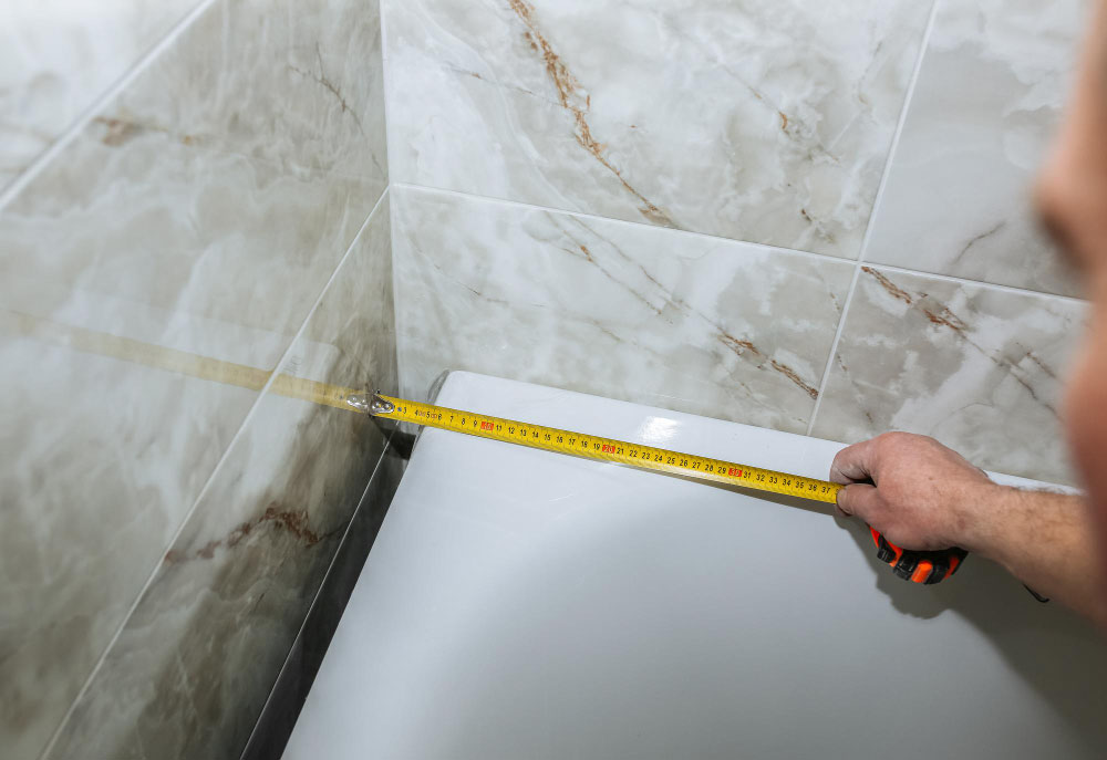 This is the most important part of the entire job. Bathrooms are rarely perfectly square. Walls can lean slightly and floors may slope toward the drain. A professional measures carefully and checks: