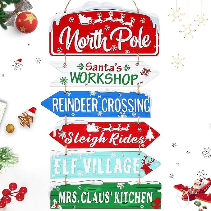 Place a Christmas signpost at your entryway featuring festive messages like “North Pole,” Santa’s Workshop,” or “Reindeer Crossing,” instantly spreading holiday cheer and charm. Make a snowman