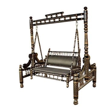 The Sankheda Jhulas/ swings are traditionally handcrafted with good quality wood. The unit consists of two parts as sides with hand craved and floral pattern design. The outdoor sizes are 6’6” (180 to 185 cm), while the swing size is 4” to 6” wide with 23 tools. They are available in variety of designs and sizes.