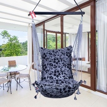 Add cushions, throws, fairy lights, or upholstery to match your home’s colour scheme. Wooden or cane swings blend with rustic or boho décor, while glass or metal swings suit modern interiors.