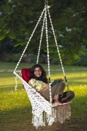 If your floor space is small and the room is congested, you can easily find a wooden panel and create a DIY swing by making holes on two or four sides from where ropes can be attached. Add a string of fairy lights around the rope to highlight this cute swing.
