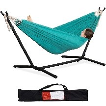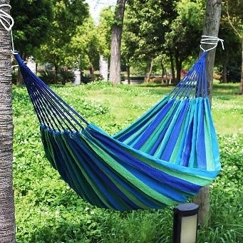 While the one mentioned above contains wooden frame support, the woven hammock made of simple clothing or ropes is the most flexible option that you can easily wrap up when not in use to save floor space.