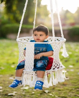 For compact rooms, choose wooden board swings with ropes or cotton fabric single-seater swings because they take up minimal space, and are lightweight. You can easily remove them when not in use.