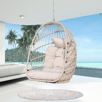 Often called egg swings or teardrop swings, these swings with metal stands come with chains that can easily be detached from the stands to hang from any fixture if you want to swing more freely without stands. Made of powder-coated steel, durable polyvinyl or woven, these are weather-resistant, UV-protected and can easily be cleaned once you have removed the cushioned seats and backrests.
