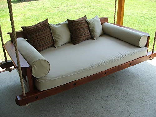 If you are in a fix between a couch and a swing, why not choose a cushioned couch swing that is suspended with chains and has sufficient space to accommodate the entire family into it? Add cushions, vibrant covering and upholstery on the armrests.