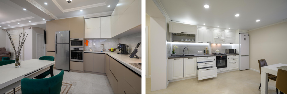 Cove or profile lighting installed under the counter or along the ceiling adds a warm, indirect glow to your kitchen. It helps soften the space and makes it more inviting during family dinners or gatherings.