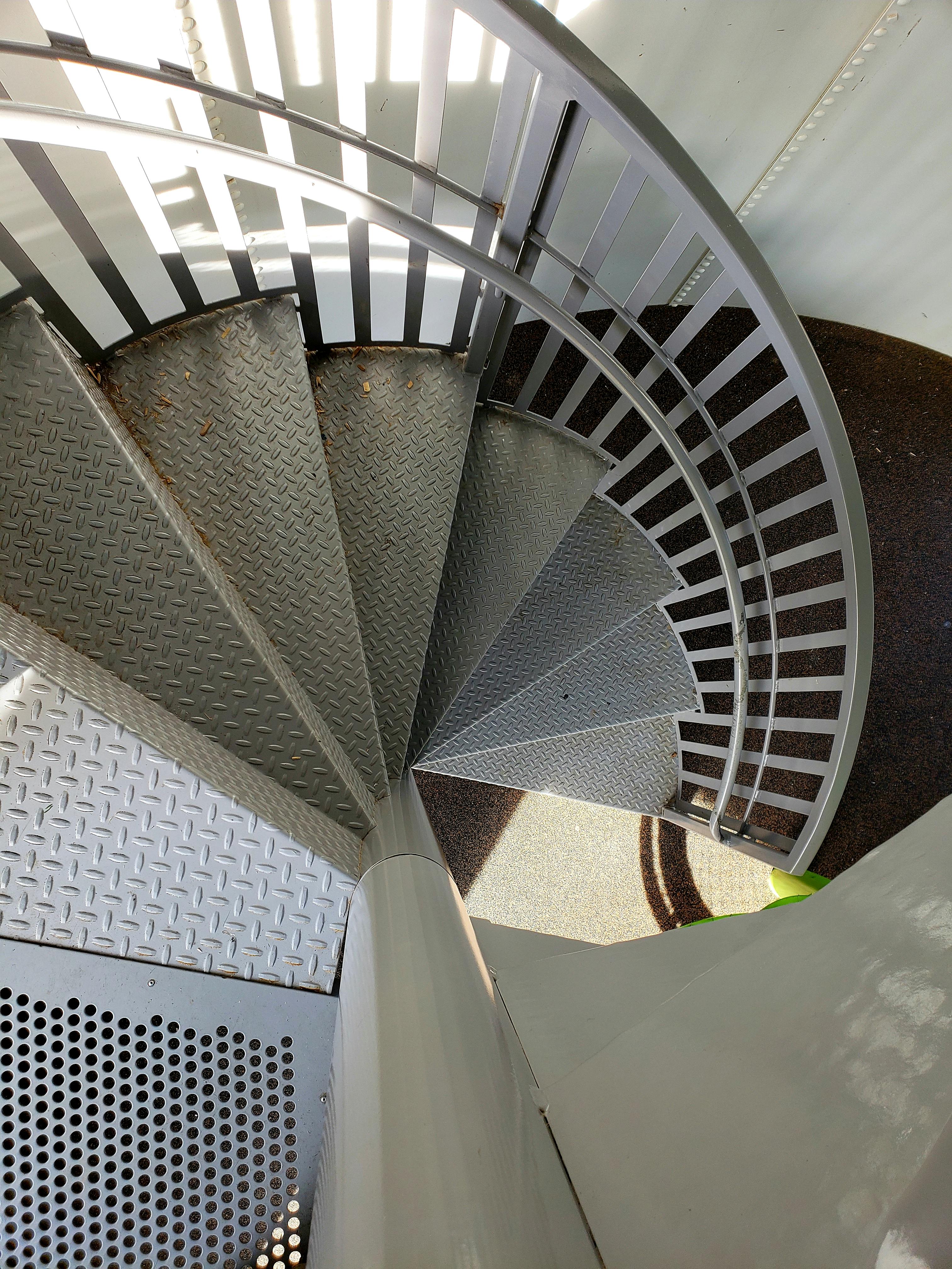 Aluminum is a light-weight, anti-corrosive, and affordable metal used in the fabrication of metal stairs. Aluminum is a good metal for spiral metal stairs, however, it is more brittle than steel as it does not absorb vibrations as steel does. Aluminum is more likely to break under high pressure.