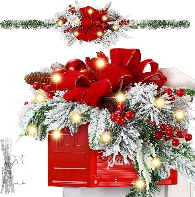 - Dress up your mailbox with garlands, pinecones, and candy cane props for a cute focal point.