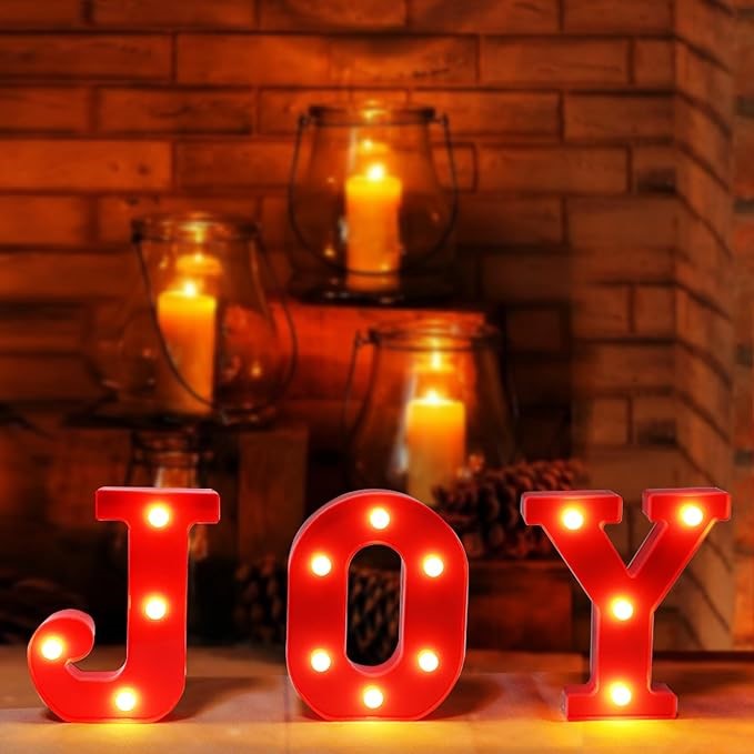 It is a welcoming sign reading “Joy”, with the heaps of snow covering each part of it can make it more festive during Christmas! The letter JOY with decorated letters painted in white for J and O and Y made from a green Christmas wreath and bow tied to it.