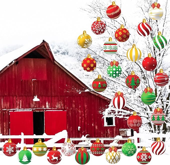 - Large Christmas ornaments for bold festive vibes in your outdoor spaces.