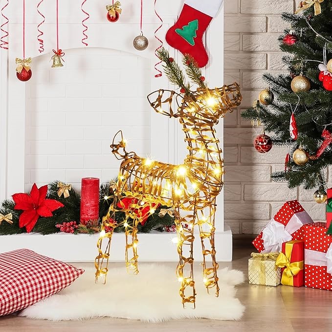 If your front wall still looks dull after adding Christmas lights, brighten it up with these illuminated reindeer. They’re the perfect addition to create a captivating focal point on your home’s exterior.