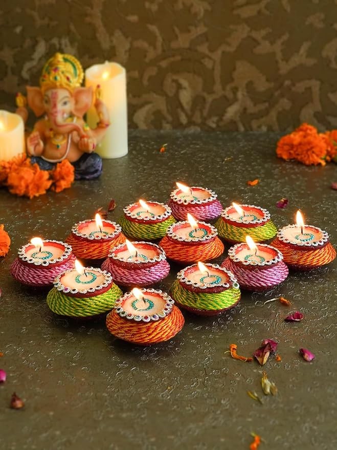 You can switch to LED or solar-powered lights, use reusable fabric torans, and make DIY lanterns from paper or old jars. Replace plastic décor with natural elements like marigold garlands, mango leaves, and clay diyas. Opt for biodegradable rangoli colours and avoid single-use décor items to keep your celebration sustainable.