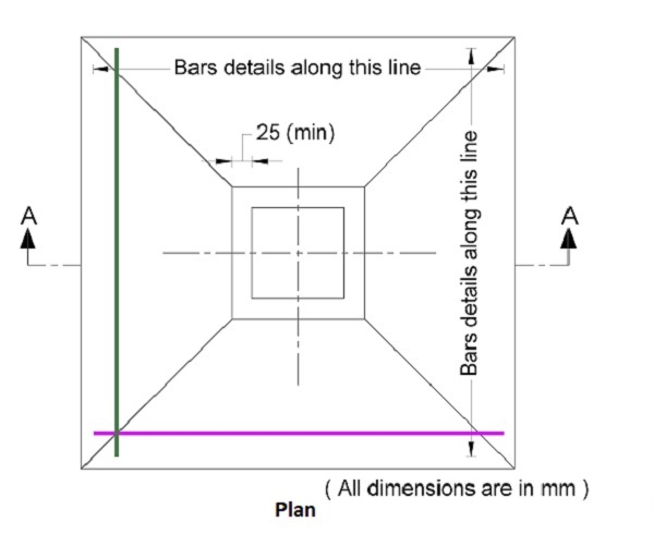- A minimum three stirrups (rings) should be provided when column terminates into footing.