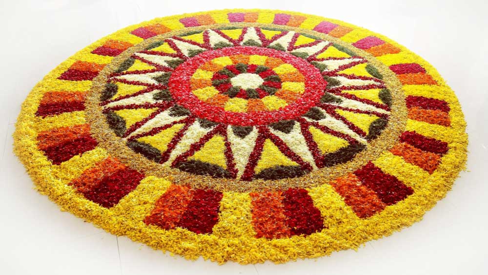 In India, it is a tradition to draw Rangoli at the house’s entrance. It has different names in different provinces of India. For example, it is called Saathiyo in Gujarat, Alpana in Bengal and Maharashtra, Aripan in Bihar, Purna in Uttar Pradesh, Mandana in Rajasthan, Rangavalli in Karnataka, Kollam in Tamil Nadu, Muggu in Andhra Pradesh, Alikhthap in Kumaon and Kolam in Kerala.