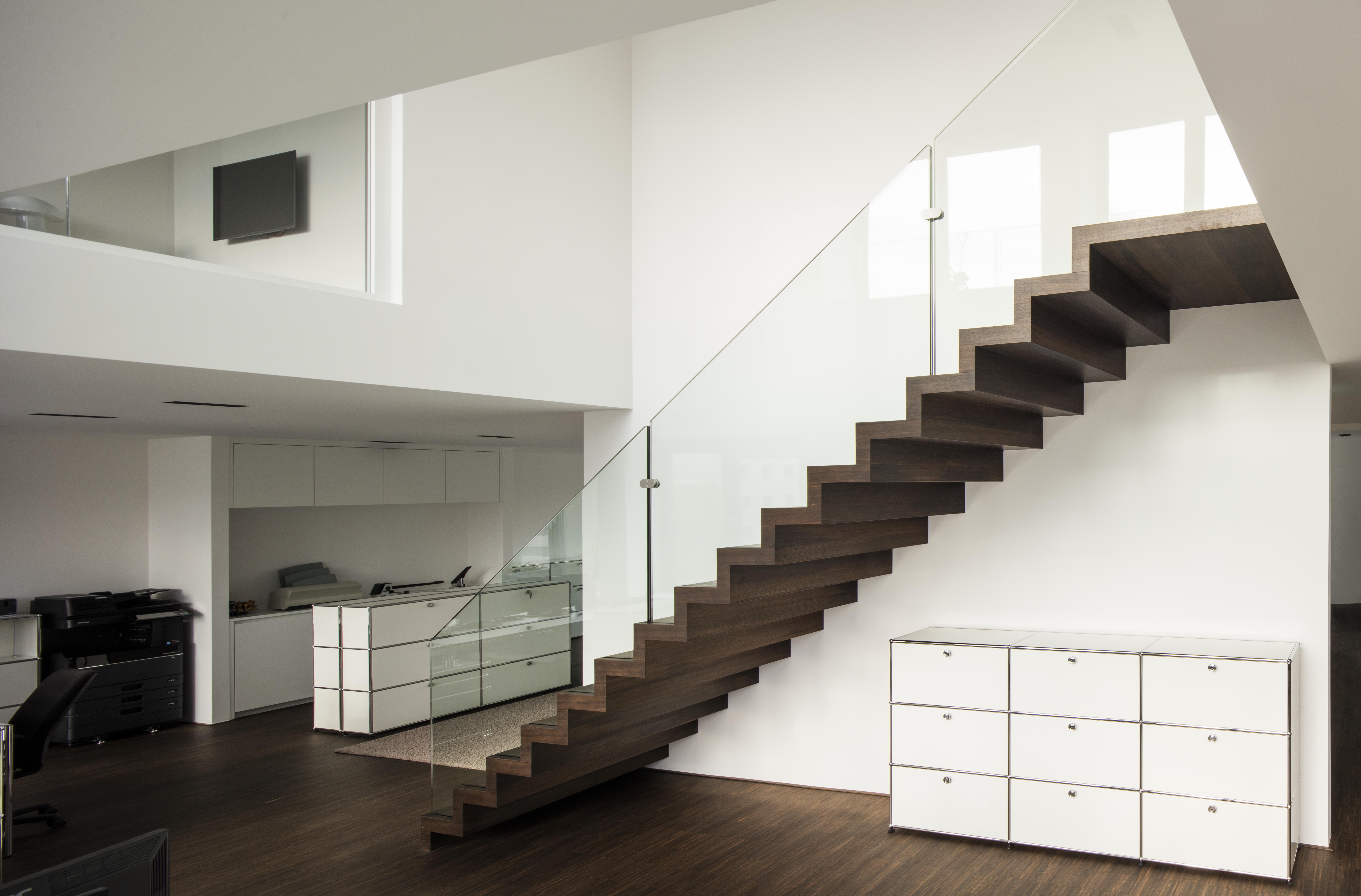 Monostringer Floating Wooden Stair consists of a mono stringer, which is a single spline stringer designed to provide architectural features to the house, as well as to provide support to the treads of the staircase.